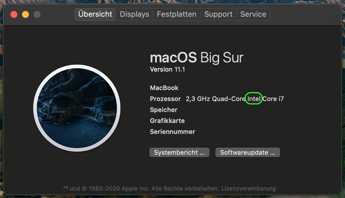 | Gültig für macOS ab 10.14 auf Intel CPUs. |