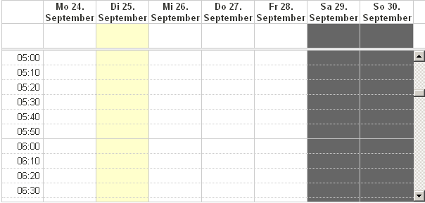 Wirkt sich nur in den Ansichten Arbeitswoche und Tag aus.