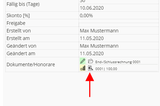 Sofern Sie in der Konfiguration Honorare eine der möglichen E-Rechnungsformate aktiviert haben, können Sie aus den Honorarabrechnungen eine E-Rechnung erstellen.