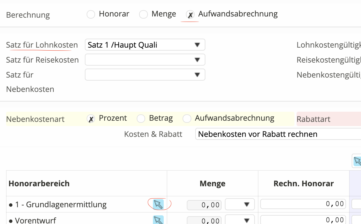 - Wählen Sie den Satz im Angebot aus und hinterlegen Sie mittels editieren