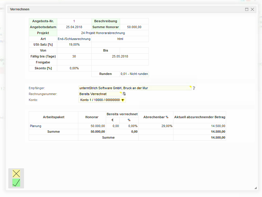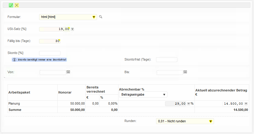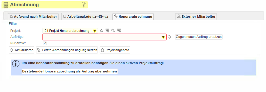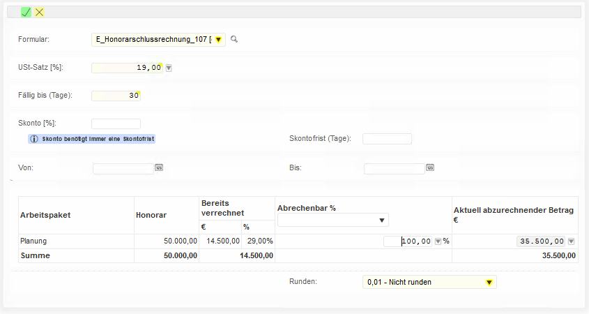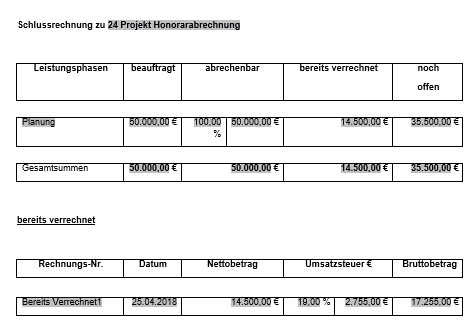 Übernahme bestehender Rechnungsbeträge in die Honorarabrechnung