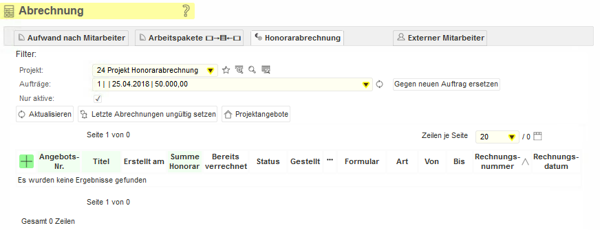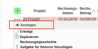 - Anschliessend wird die geänderte Honorarnote im Modul Honorare angezeigt:
