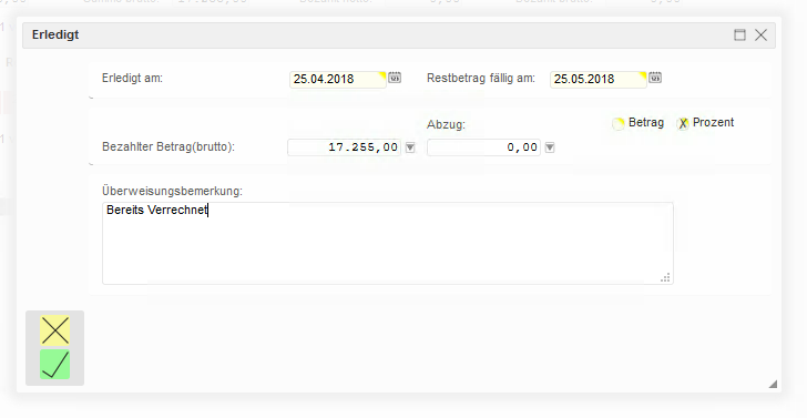 - Entfernen Sie im nachfolgenden Fenster das Häckchen erledigt.