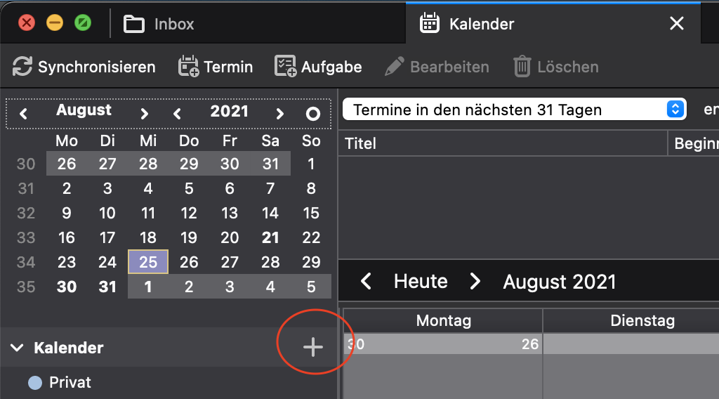 Wenn Sie bereits viele Termine in untermStrich haben, wird Thunderbird einige Zeit benötigen, diese alle zu laden.