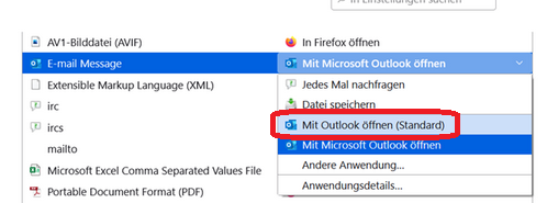 - Bei der E-Mail Message „Mit Outlook öffnen (Standard)“ wählen