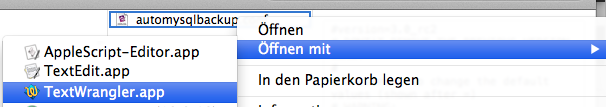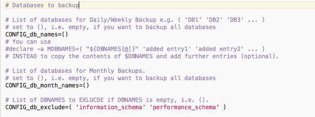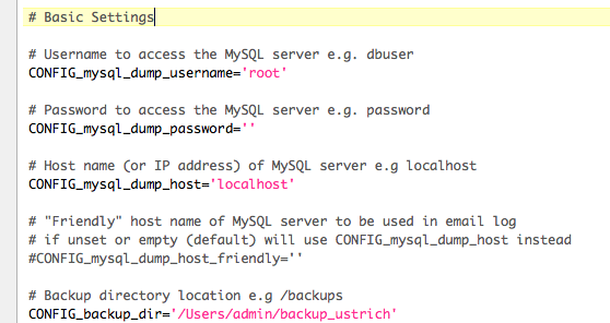 /etc/automysqlbackup/automysqlbackup.confmit TextWrangler - Passen Sie die Verbindungsdaten und das Backup Verzeichnis an.