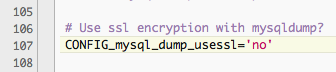 - Bei neueren automysqlbackup Versionen kann ein „SSL Connection error“ liefern. Dann bitte den Wert auf no stellen und die # entfernen: