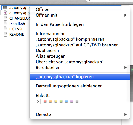 Kopieren Sie die automysqlbackup nach /usr/local/mysql/bin