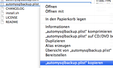 Laden Sie bitte die automysqlbackup.plist herunter und entpacken Sie die Datei durch einen Doppelklick (Wenn nicht bereits geschehen).