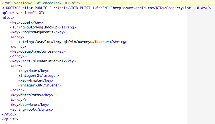 sudo chown root:wheel /Library/LaunchDaemons/automysqlbackup.plist sudo launchctl load /Library/LaunchDaemons/automysqlbackup.plist