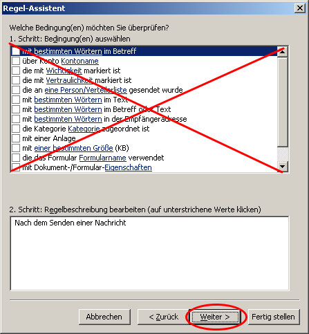 - Wählen Sie den Zielordner. Typischerweise „Sent“.