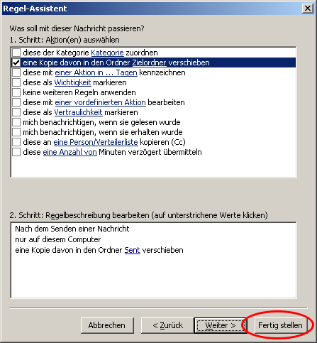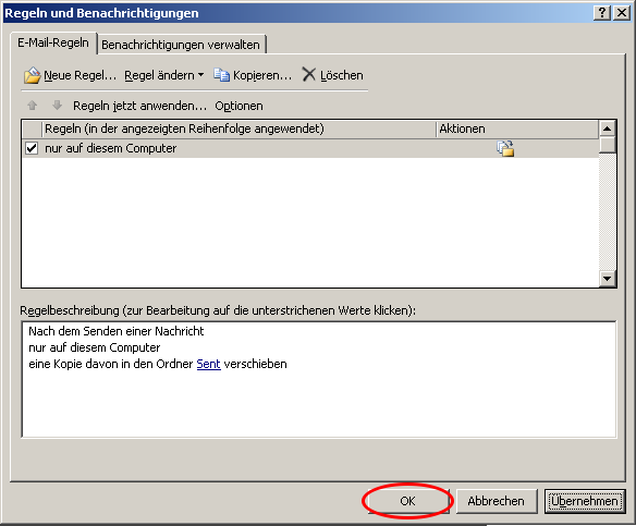 Microsoft Outlook - Gesendete Objekte am Server speichern
