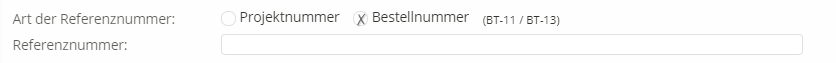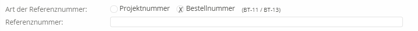 - eine für den Empfänger gültige und referenzierbare Auftragsreferenz. Alternativ kann hier die Leitweg-ID eingegeben werden, welche ebenfalls als Referenz gültig ist.