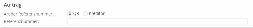 - eine Referenznummer, welche der Empfänger als Referenz zu dieser Rechnung einlesen kann. Bei dieser Nummer kann ausgewählt werden, ob es sich um eine QR- oder eine Kreditorennummer handelt. Je nachdem, um welche Nummer es sich handelt, gelten andere Formatierungen der Nummer (Zeichenlänge etc.).