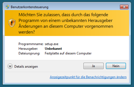 2. Starten Sie das Setup-Programm und bestätigen Sie die Benutzerkontensteuerung:
