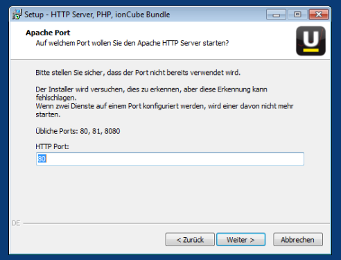 • Bei einem Update, geben Sie hier bitte wieder den gleichen Port wie zuvor an.