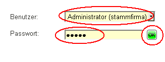 Melden Sie sich mit dem Benutzer Administrator und dem Kennwort admin an.