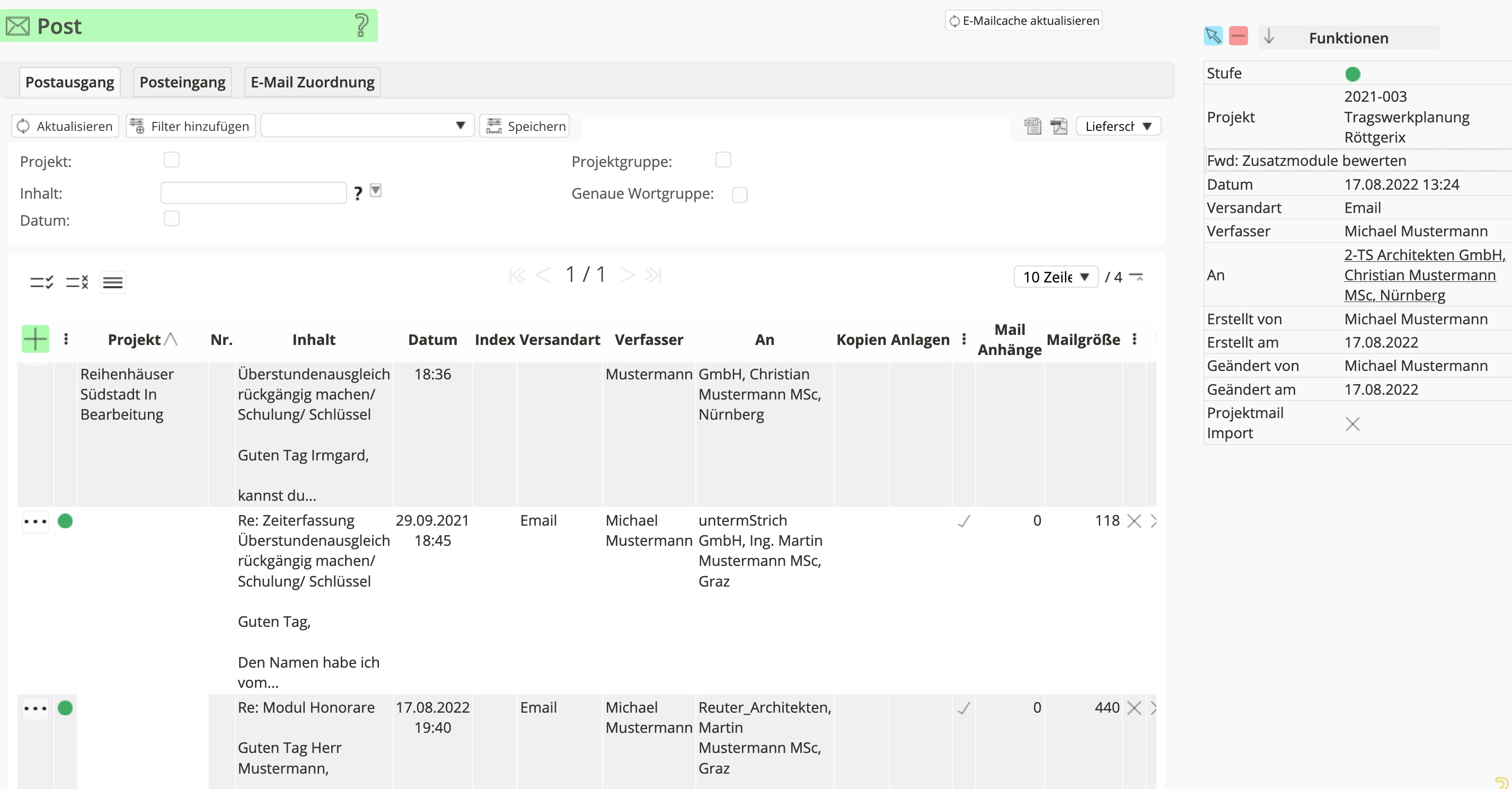 Das untermStrich Modul Post unterstützt Sie bei der Dokumentation der anfallenden Postein- und Postausgänge die im Zuge der Projektbearbeitung entstehen. Erfassen Sie die Schriftstücke, um bei einer Projektauswertung eine lückenlose Nachvollziehbarkeit der Abläufe zu erhalten.
