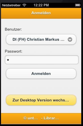 Um die Startseite von untermStrich angezeigt zu bekommen, geben Sie Ihren Benutzernamen und Kennwort ein und tippen Sie auf Anmelden.