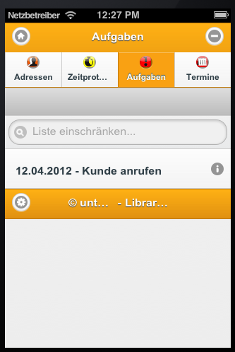 Um die Detailinformationen für diese Aufgabe aufzurufen, tippen Sie auf die gewünschte Aufgabe oder auf die