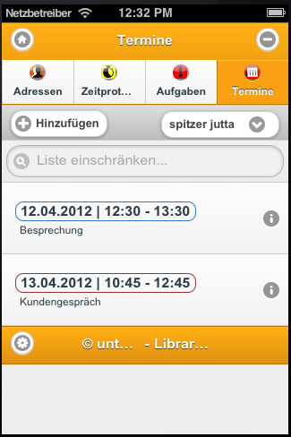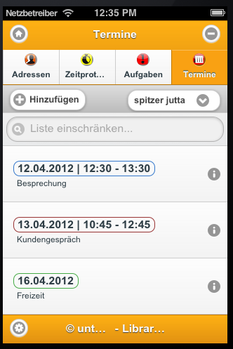 Beim Starten des Moduls wird eine Auflistung der Termine für den angemeldeten Benutzer angezeigt.