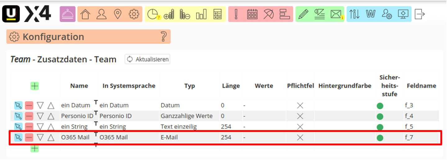 Um Termine für Mitarbeiter erstellen zu können, wird für jeden Mitarbeiter eine E-Mail-Adresse im Modul Team benötigt. Diese E-Mail-Adresse sollte nach Möglichkeit eine Microsoft 365 Adresse sein. Diese kann in den Team-Stammdaten im Feld „E-Mail“ hinterlegt werden. Wenn eine andere Microsoft 365 Mail-Adresse für die Termineinladungen genutzt werden soll, dann kann alternativ ein Team-Zusatzdatenfeld vom Typ „E-Mail“ mit der Bezeichnung „O365 Mail“ erstellt werden. Sobald dieses Feld existiert und bei einem Mitarbeiter befüllt ist, wird diese Mail-Adresse genutzt und nicht die, die unter „E-Mail“ hinterlegt ist.