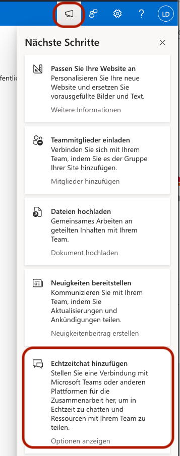 Option 2: SharePoint über Microsoft Teams erstellen (empfohlen)