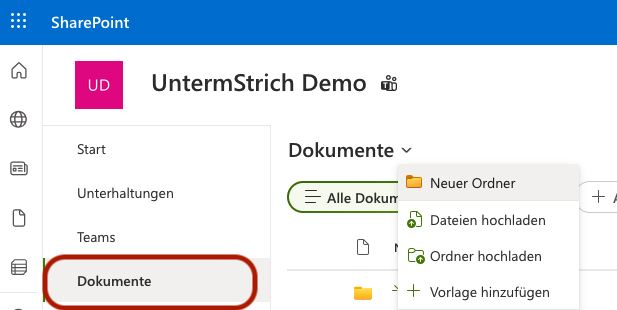 Beim Erstellen wird im Hintergrund automatisch eine SharePoint-Website mit einer vorgefertigten Dokumentenstruktur erstellt.