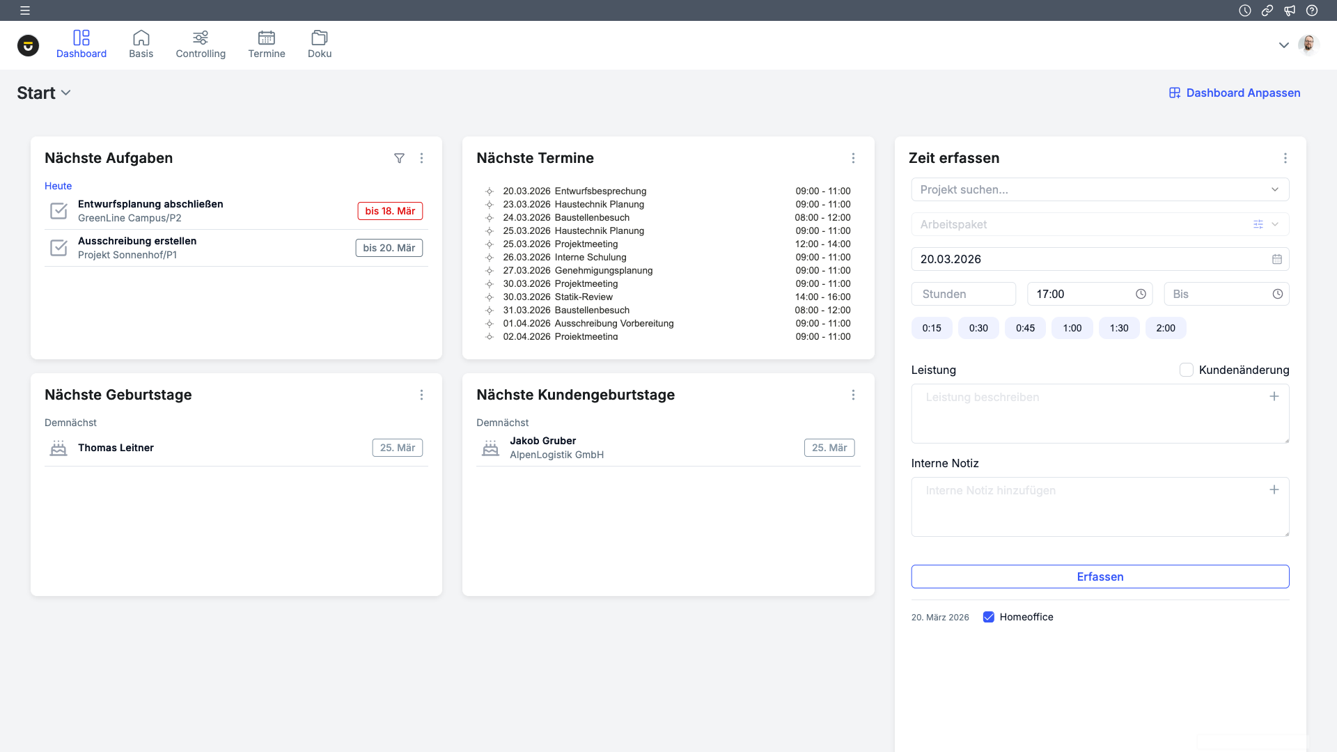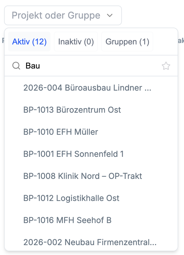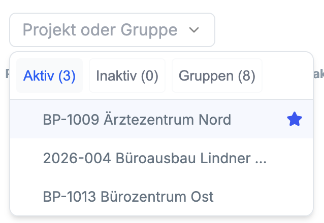 Projektfavoriten können nun direkt über das kombinierte Such- und Filtersystem aufgerufen und definiert werden. Das macht den Zugriff im Alltag schneller und reduziert unnötige Klickwege.