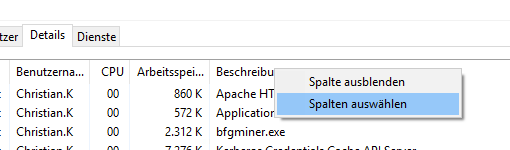 - Öffnen Sie den Task Manager und fügen Sie unter Details eine Spalte ein