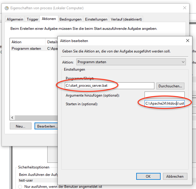 process_server_start_simple.batausC:\Apache24\htdocs\ustrichnachC:\start_process_server.bat - Öffnen Sie die Windows Aufgabenplanung und erstellen Sie eine neue Aufgabe „start_process_server“.