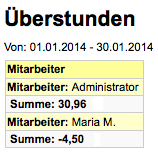 Dies erstellt eine Liste mit Mitarbeiter und den Überstunden im gewählten Zeitraum: