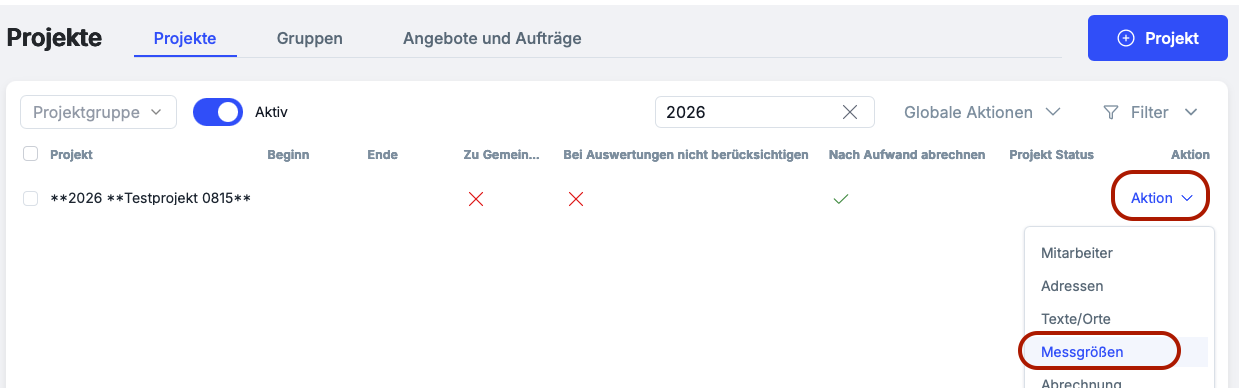 • Projekt bearbeiten/hinzufügen