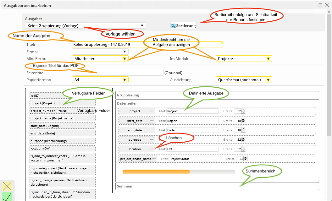 Nachdem Sie eine in ihrem ganzen System gültige Designvorlage erstellt haben, können für die jeweiligen Auswertungen benutzerdefinierte Reports in den Modulen angelegt werden.