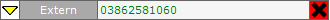 Das linke Symbol zeigt an, ob es sich um einen eingehenden (Pfeil nach unten) oder ausgehenden (Pfeil nach oben) Anruf handelt. Zusätzlich wird der Typ des Anrufs (Intern oder Extern) und die Rufnummer angezeigt.