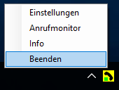 Wenn sich der Benutzer in der untermStrich-Software abmeldet, bleibt die Anruf-Protokollierung weiterhin aktiv. Sie können diese deaktivieren, in dem Sie auf den Menüpunkt Beenden im Infobereich-Symbol klicken: