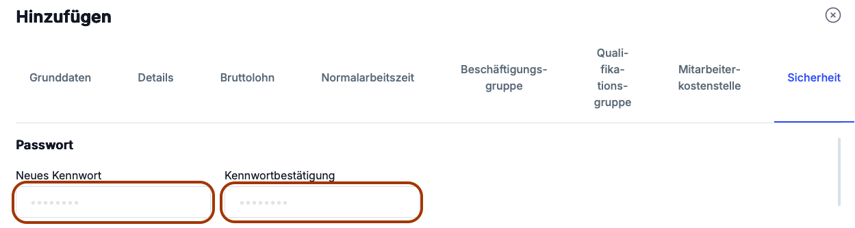 - Vergeben Sie hier für den neuen als auch für einen bestehenden Mitarbeiter ein Kennwort und bestätigen Sie dieses durch nochmaliges Eingeben im Kontrollfeld.