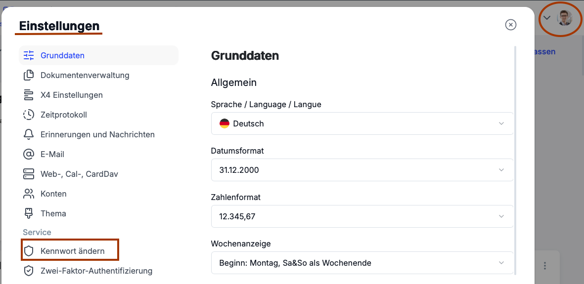 - Dieses Kennwort kann und soll der Mitarbeiter nach dem ersten Anmelden im Benutzer-Konfigurationsbereich (Benutzer/Aktionen/Kennwort ändern) selbst ändern.